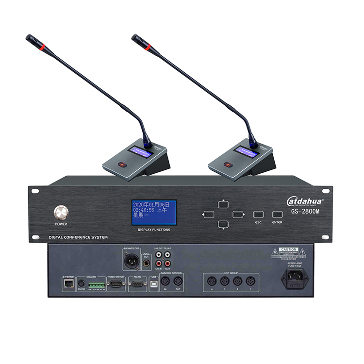 4、LCD显示屏不低于3.8英寸,内置控制菜单,可控制会议主机相关功能操作,支持中文简/繁体、英文显示;